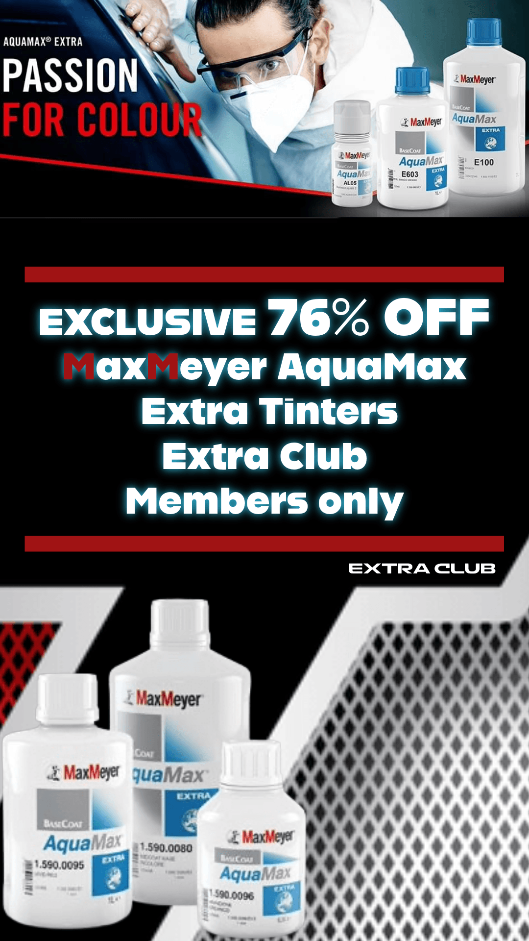 Extra Club offers extremely special pricing to the subscription members. The ranges include the new MaxMeyer Aquamax Extra system, Masking, Abrasives, Etalon SPS Cups and Meiji Spray Guns and much more.